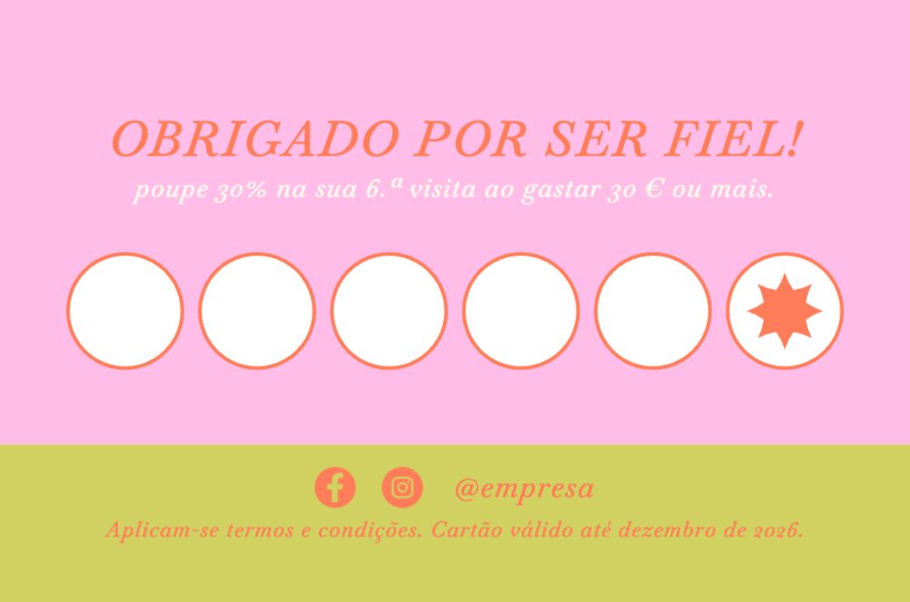 Explore diferentes estilos e modelos de cartões de fidelização. Escolha o design que melhor representa o seu negócio e personalize-o facilmente no nosso editor de design online.