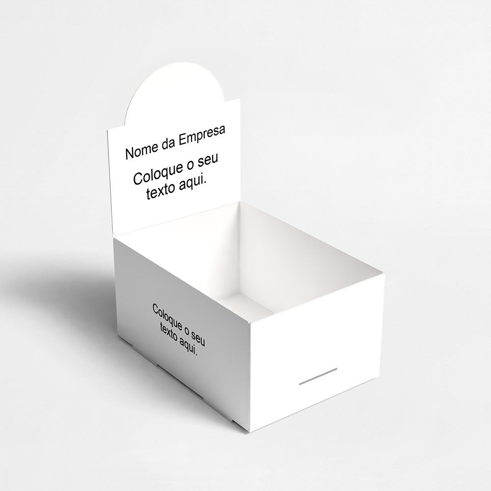 Explore diferentes estilos e modelos de caixas expositoras. Escolha o design que melhor representa o seu negócio e personalize-o facilmente no nosso editor de design online.