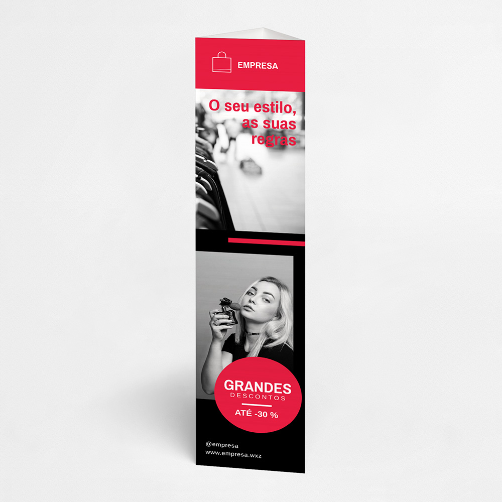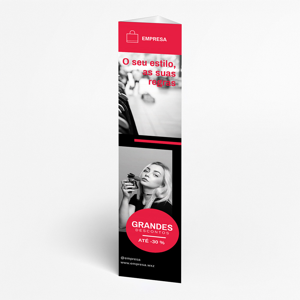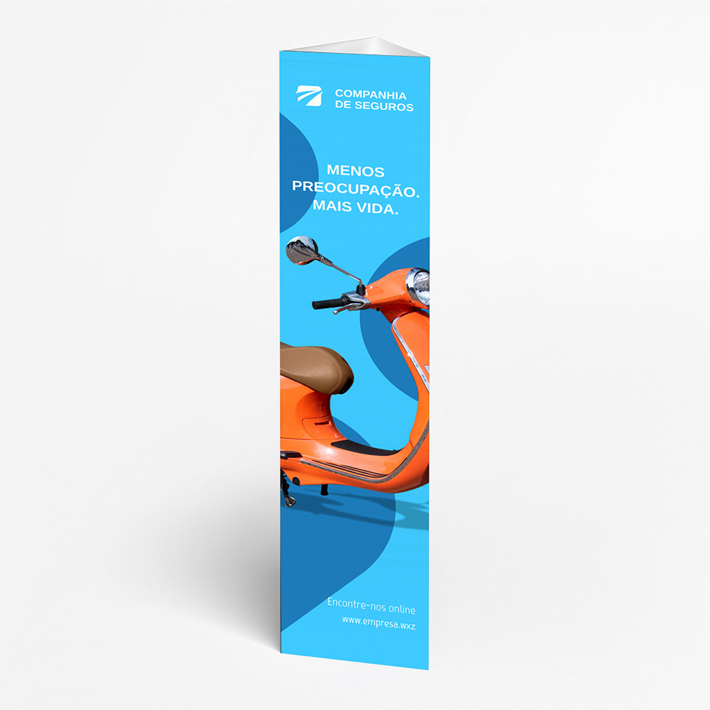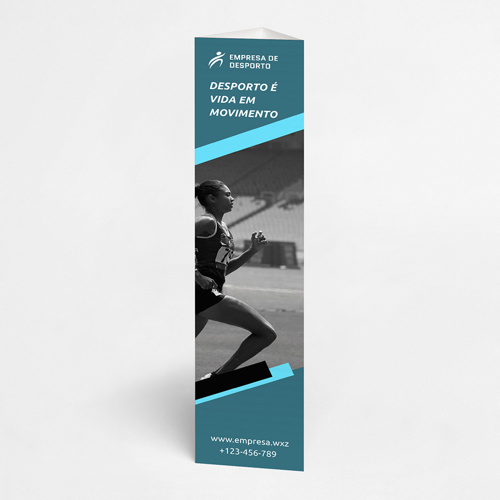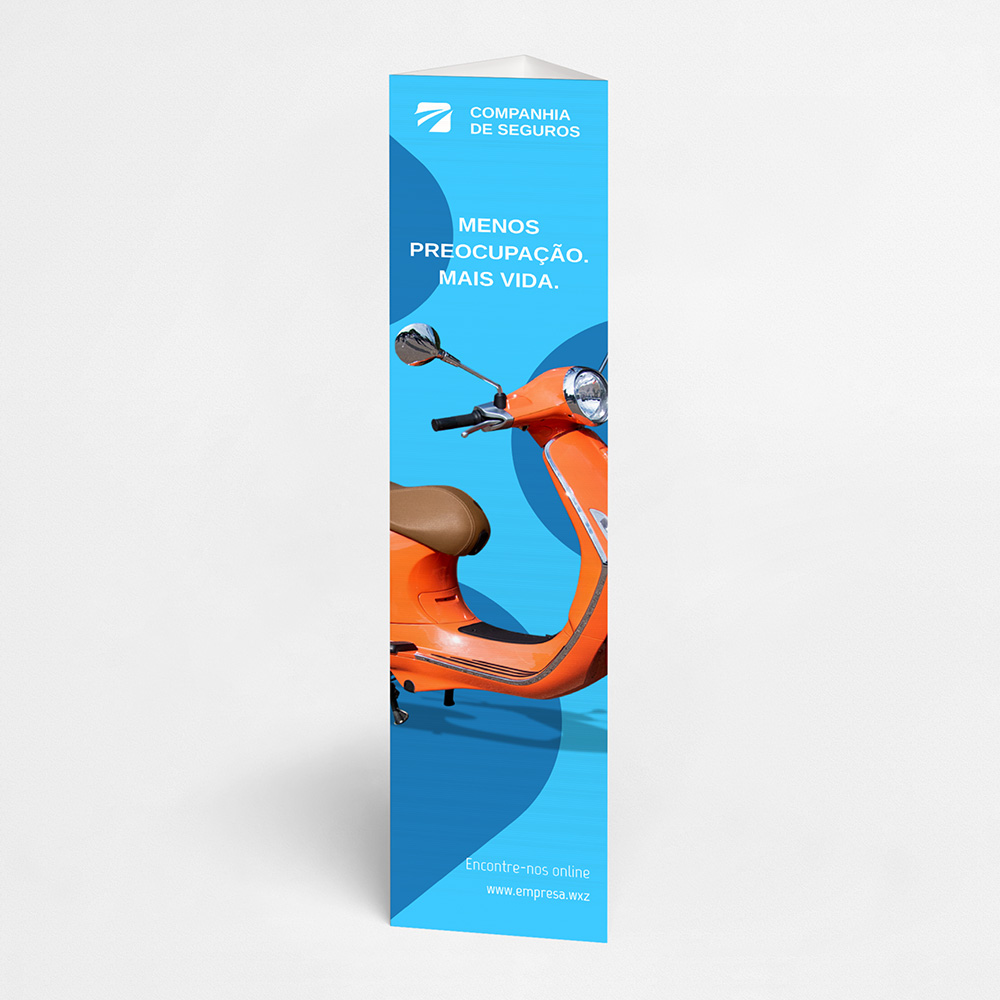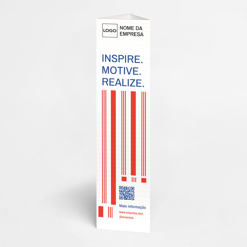 Explore diferentes estilos e modelos de totem de três faces. Escolha o design que melhor representa o seu negócio e personalize-o facilmente no nosso editor de design online.