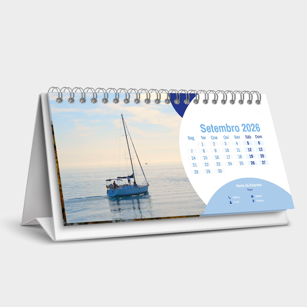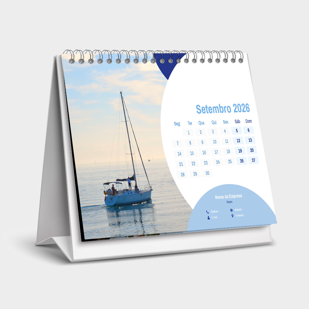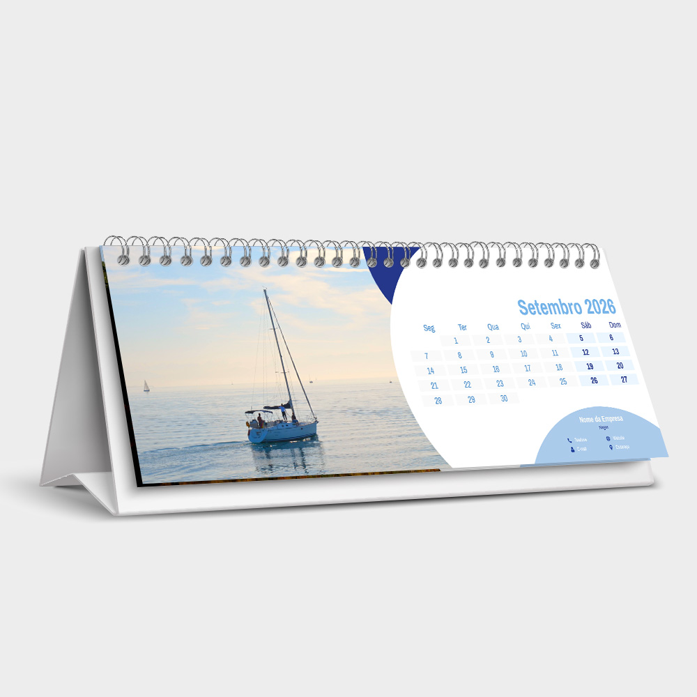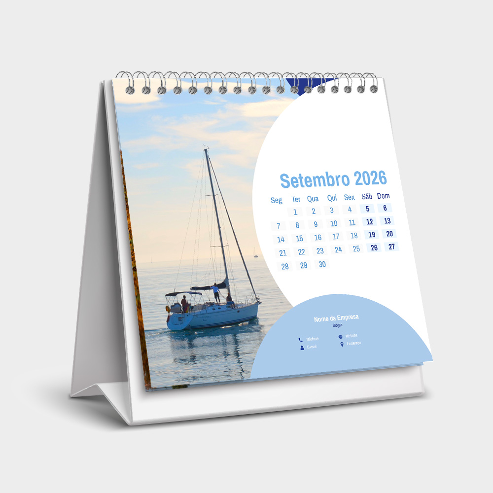 Explore diferentes estilos e modelos de calendários de mesa. Escolha o design que melhor representa o seu negócio e personalize-o facilmente no nosso editor de design online.