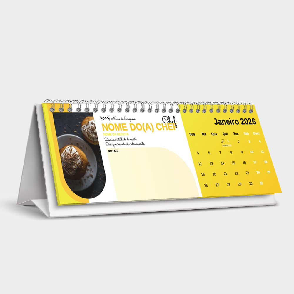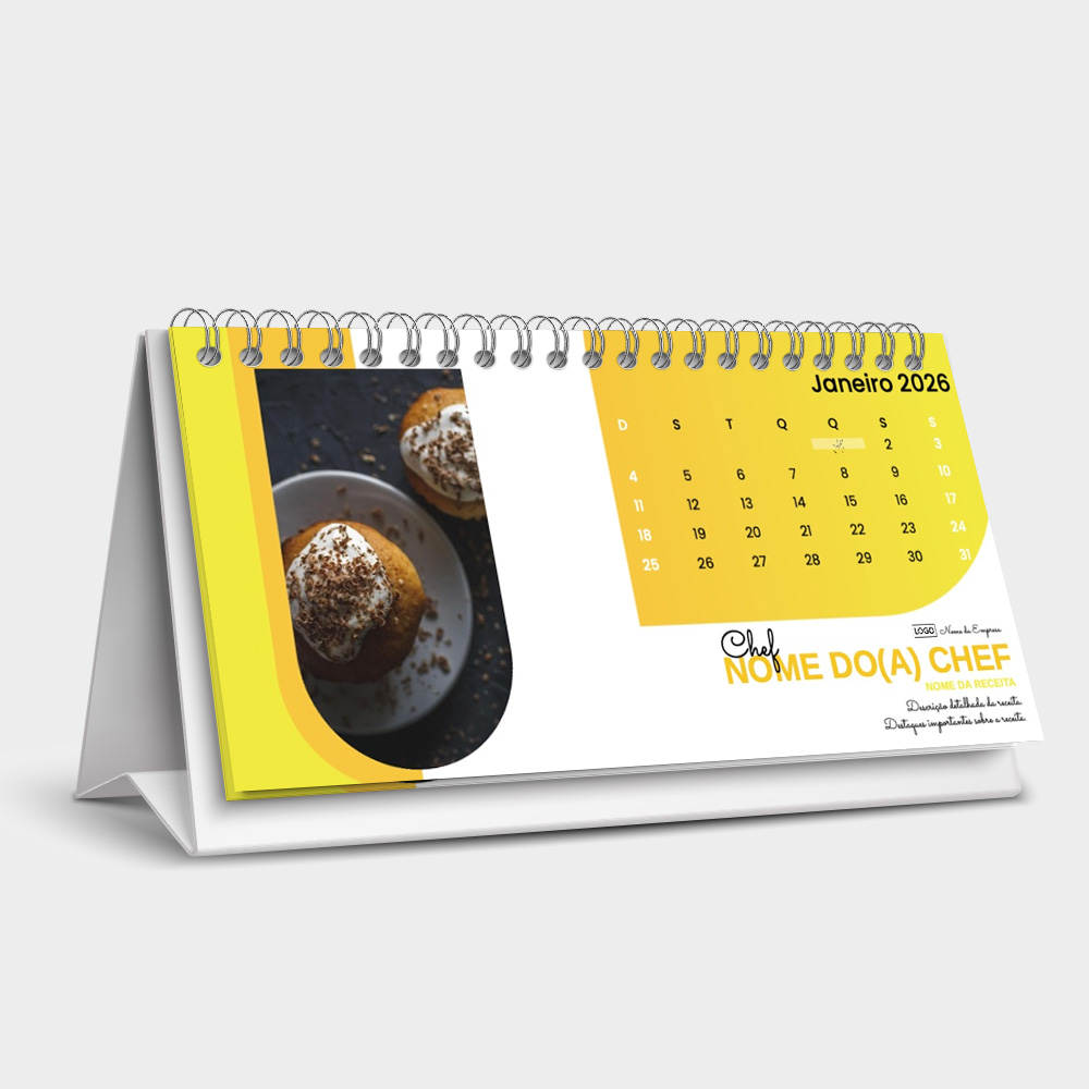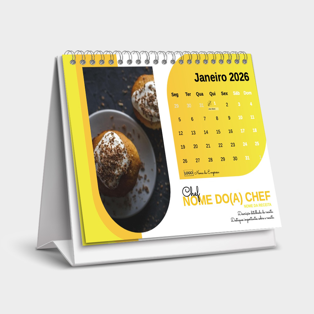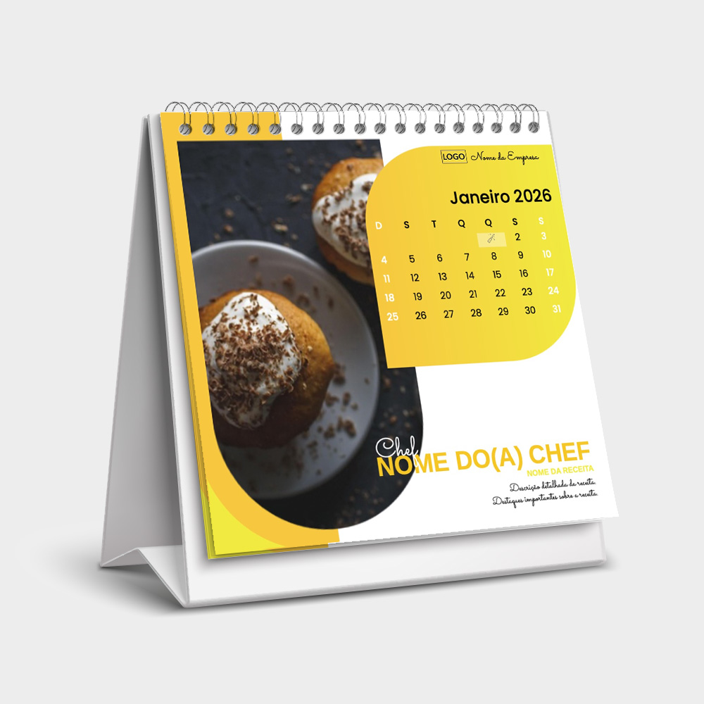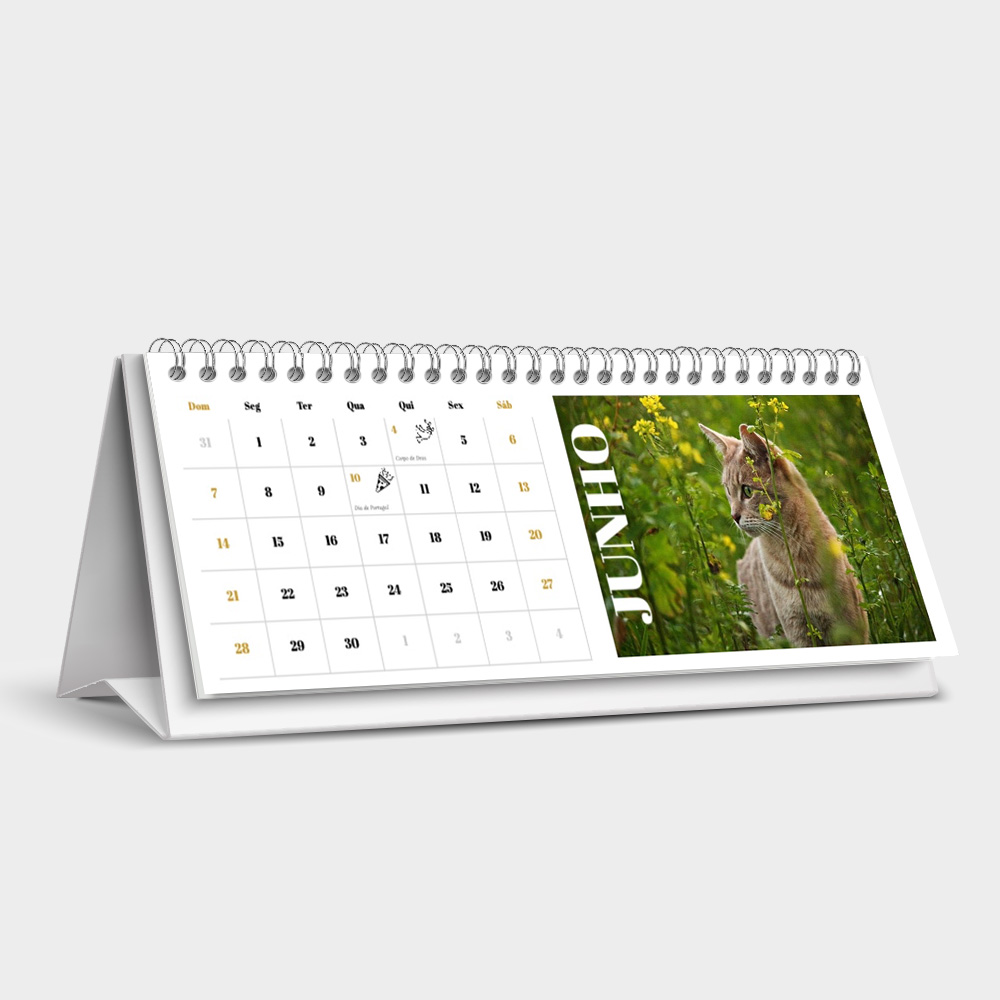 Explore diferentes estilos e modelos de calendários de mesa. Escolha o design que melhor representa o seu negócio e personalize-o facilmente no nosso editor de design online.