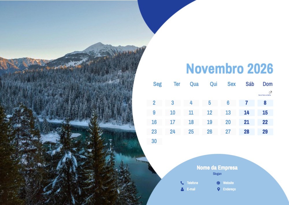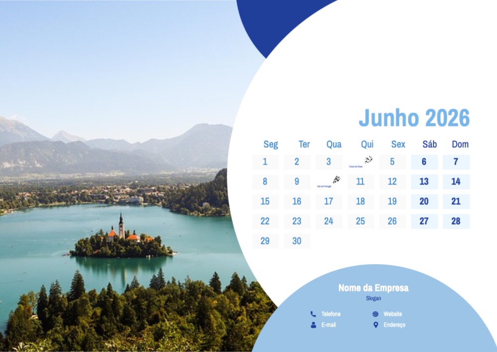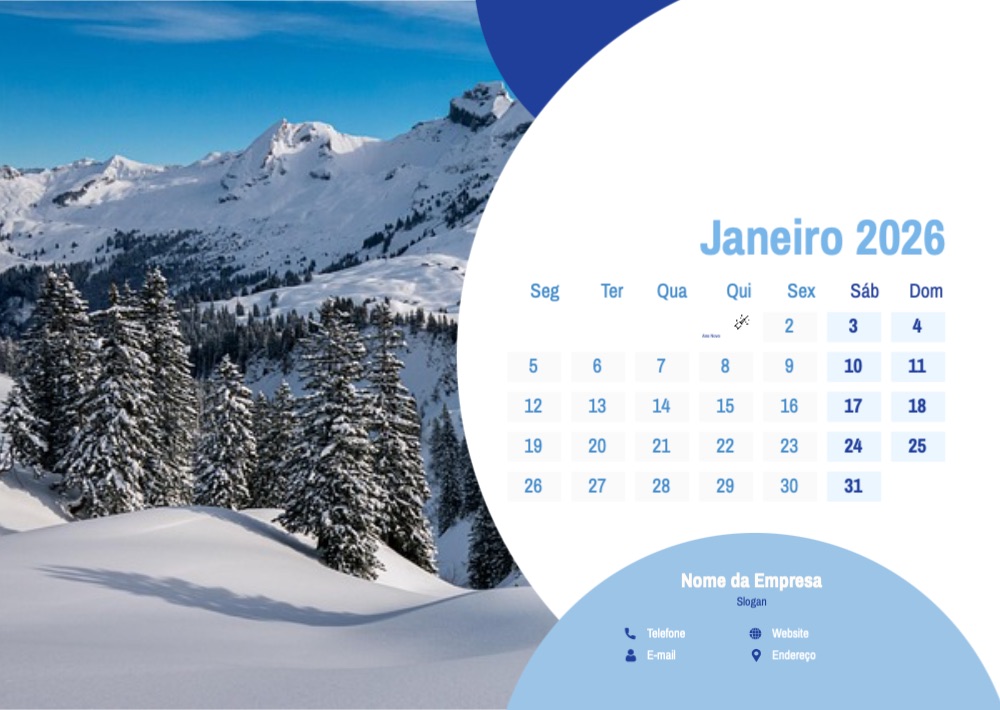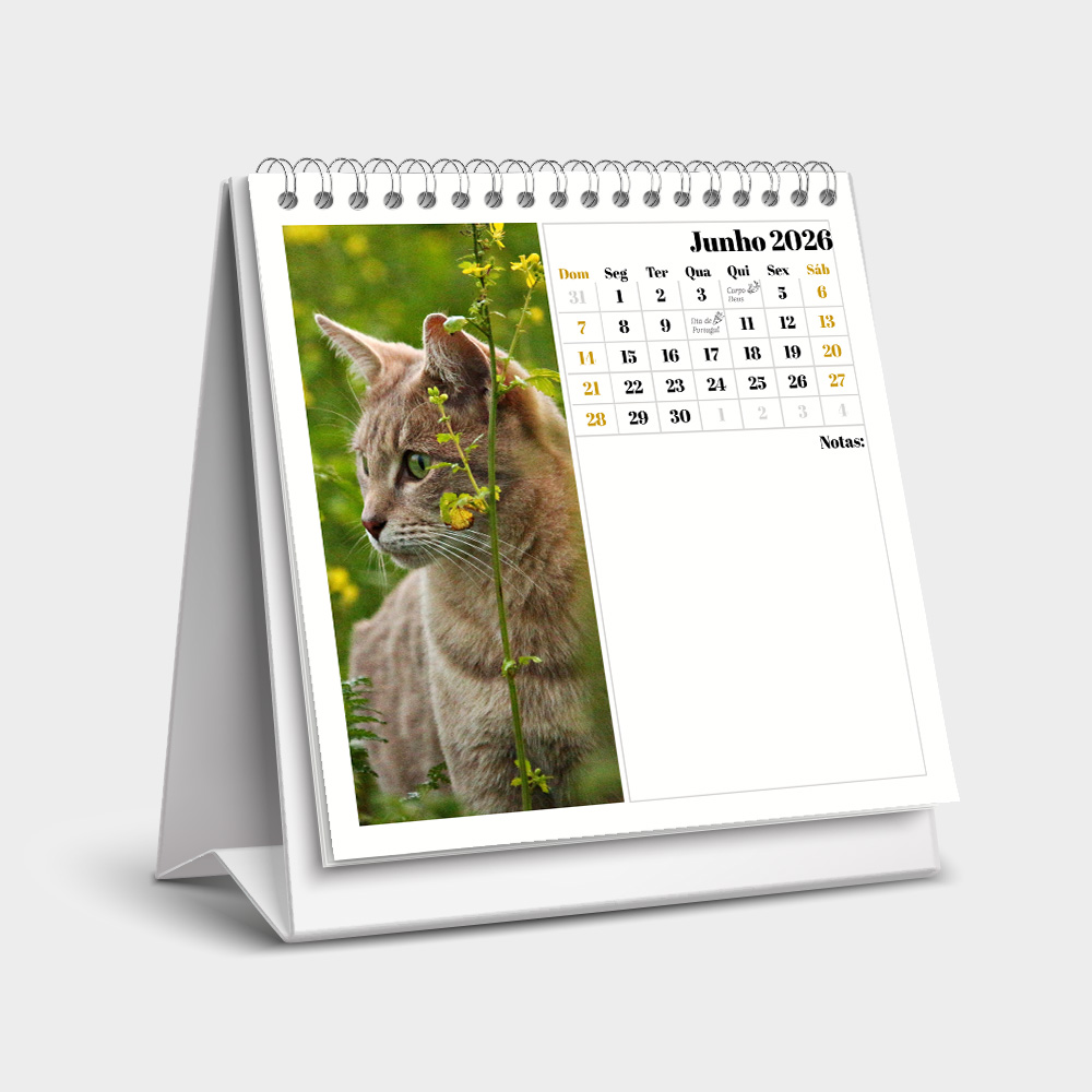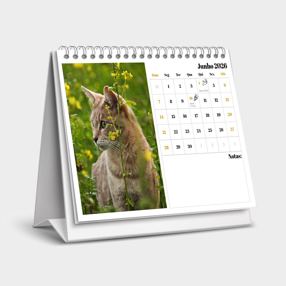 Explore diferentes estilos e modelos de calendários de mesa. Escolha o design que melhor representa o seu negócio e personalize-o facilmente no nosso editor de design online.