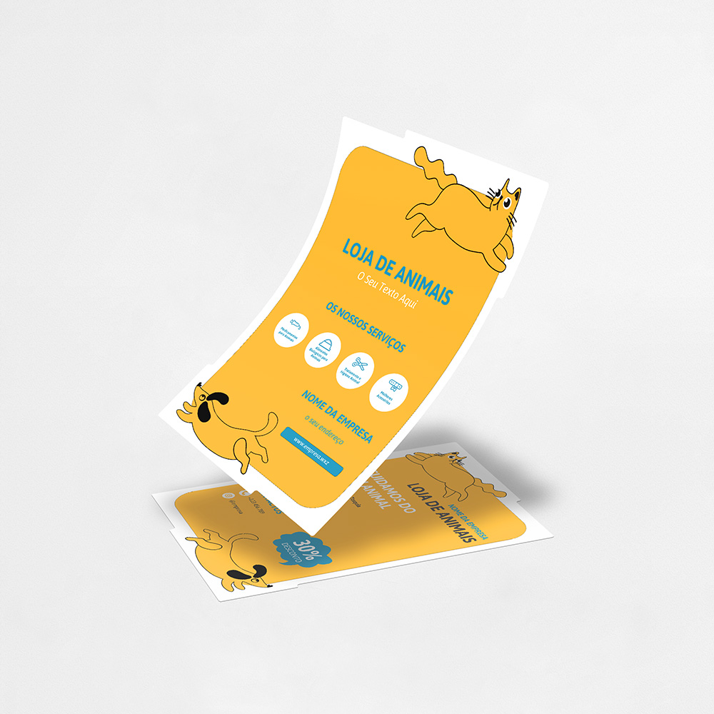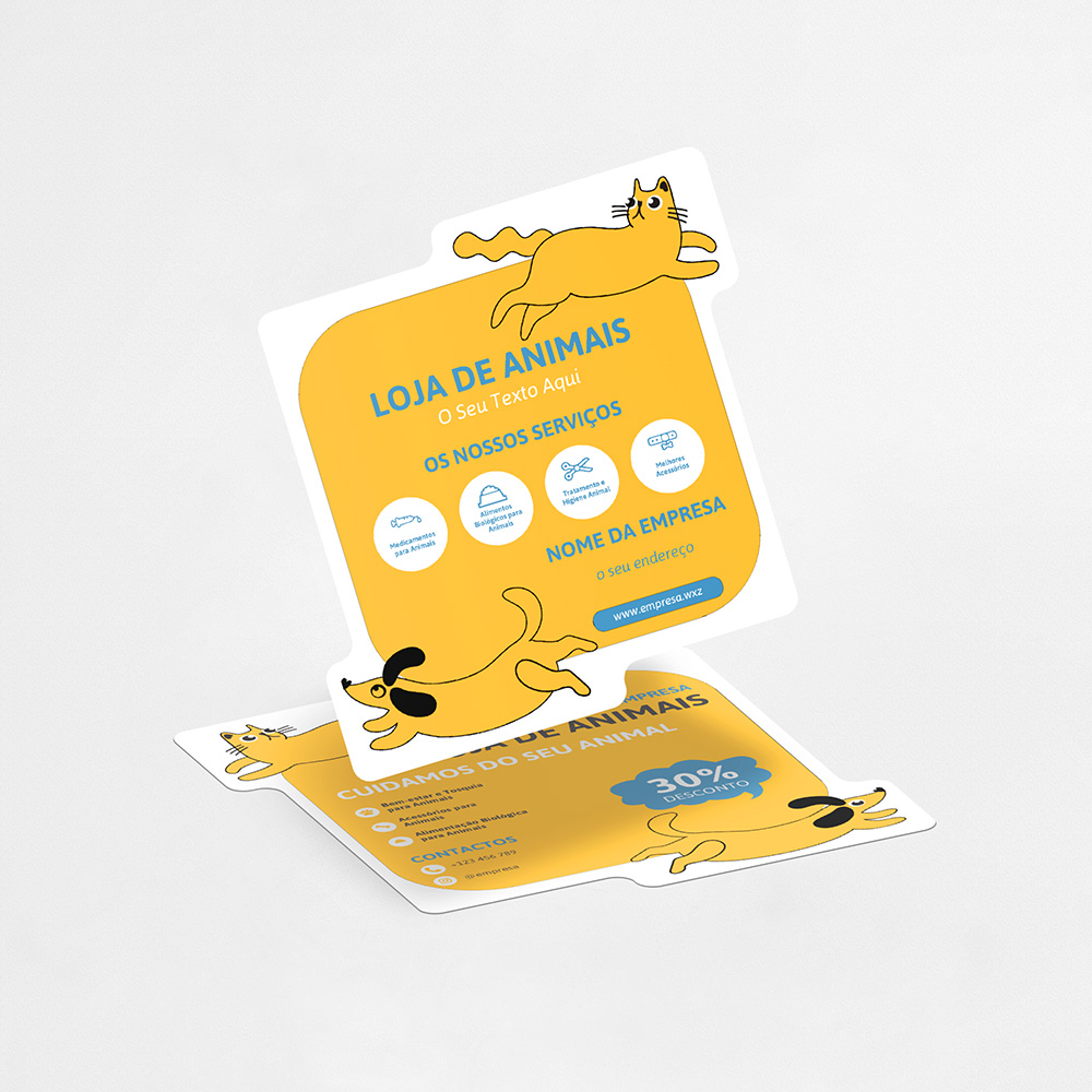 Explore diferentes estilos e modelos de flyers com corte personalizado. Escolha o design que melhor representa o seu negócio e personalize-o facilmente no nosso editor de design online.
