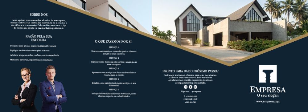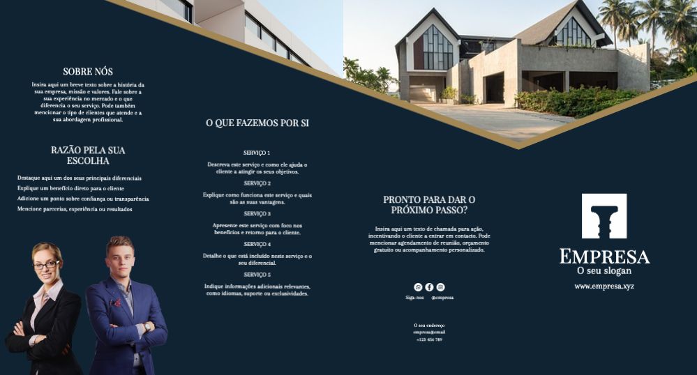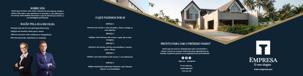 Explore diferentes estilos e modelos de folheto com 3 dobras em u. Escolha o design que melhor representa o seu negócio e personalize-o facilmente no nosso editor de design online.