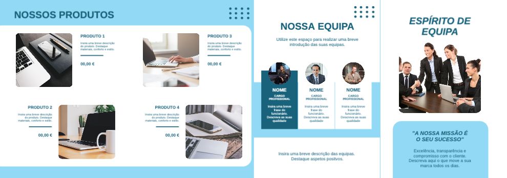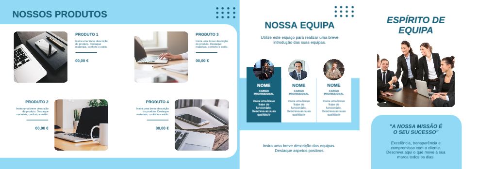 Explore diferentes estilos e modelos de folheto com 3 dobras em z. Escolha o design que melhor representa o seu negócio e personalize-o facilmente no nosso editor de design online.
