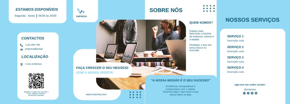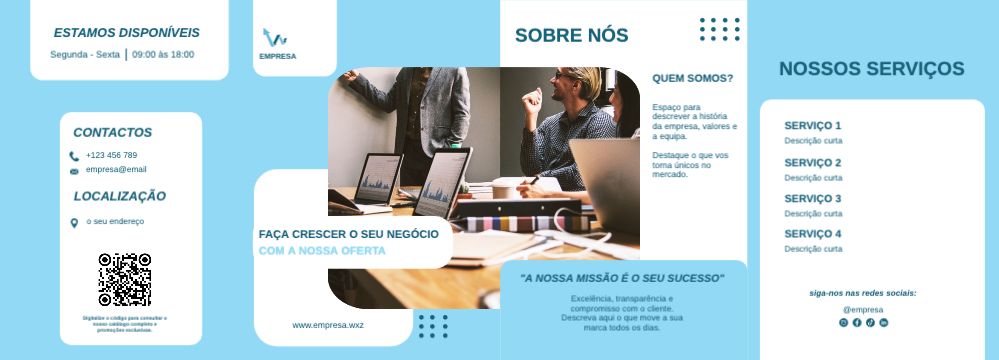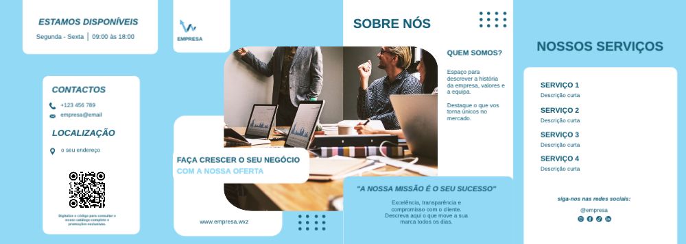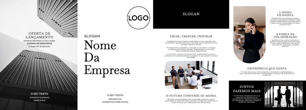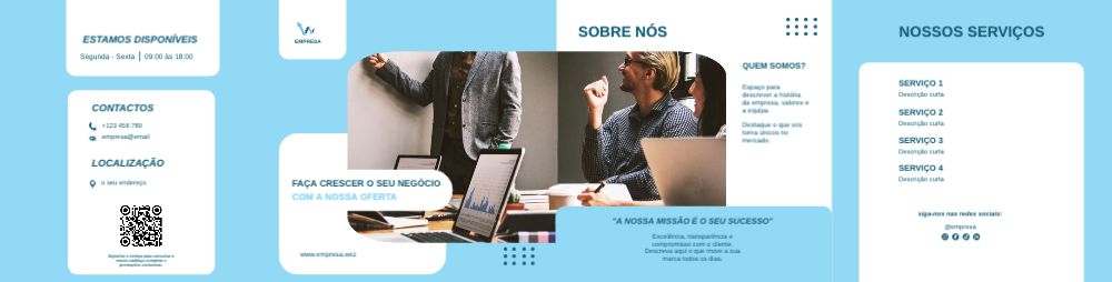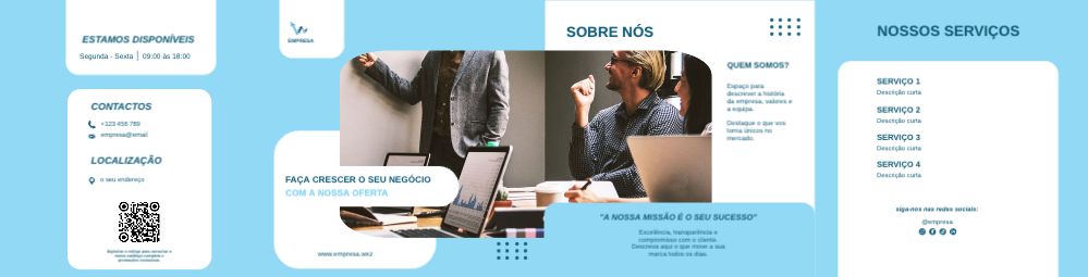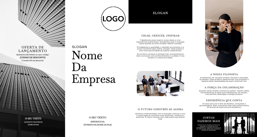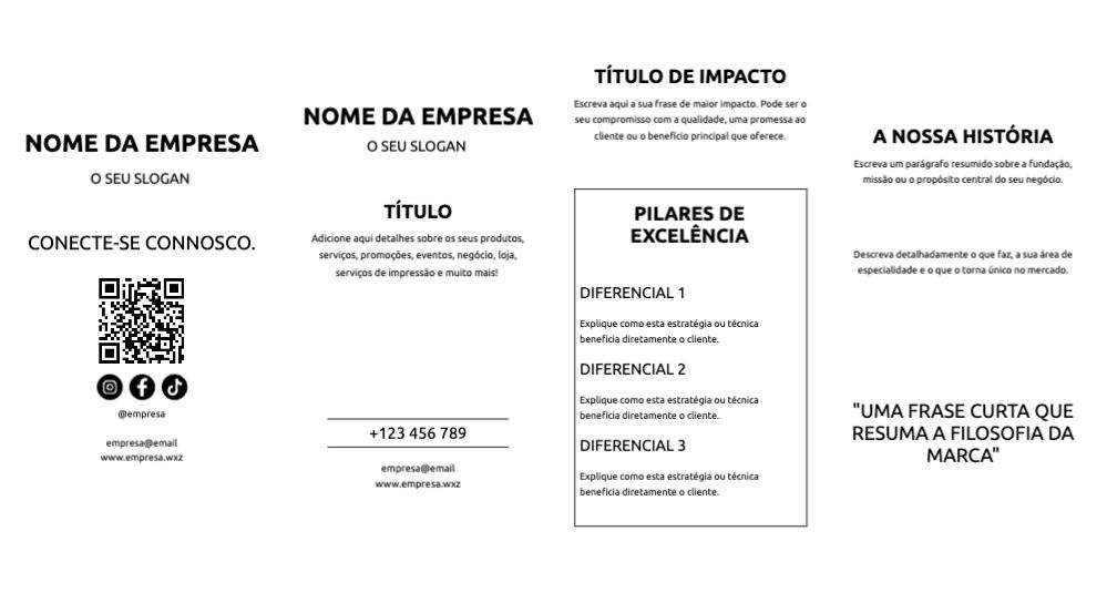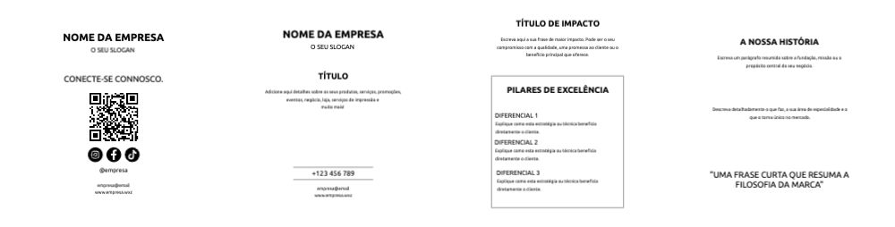 Explore diferentes estilos e modelos de folheto com dobra dupla paralela. Escolha o design que melhor representa o seu negócio e personalize-o facilmente no nosso editor de design online.