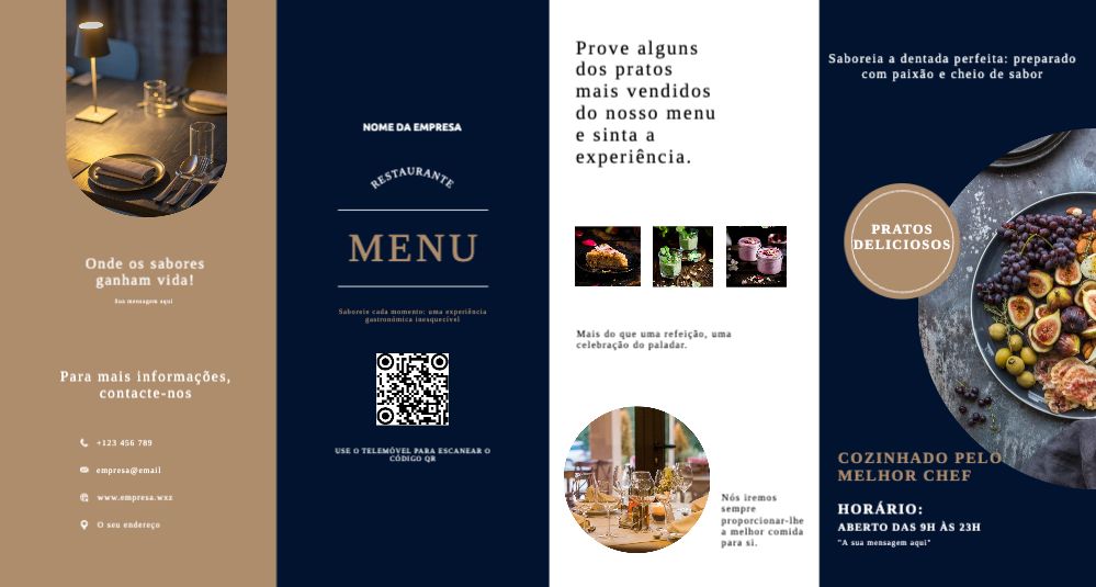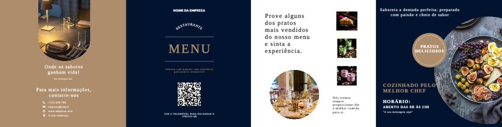 Explore diferentes estilos e modelos de folheto com dobra dupla paralela. Escolha o design que melhor representa o seu negócio e personalize-o facilmente no nosso editor de design online.