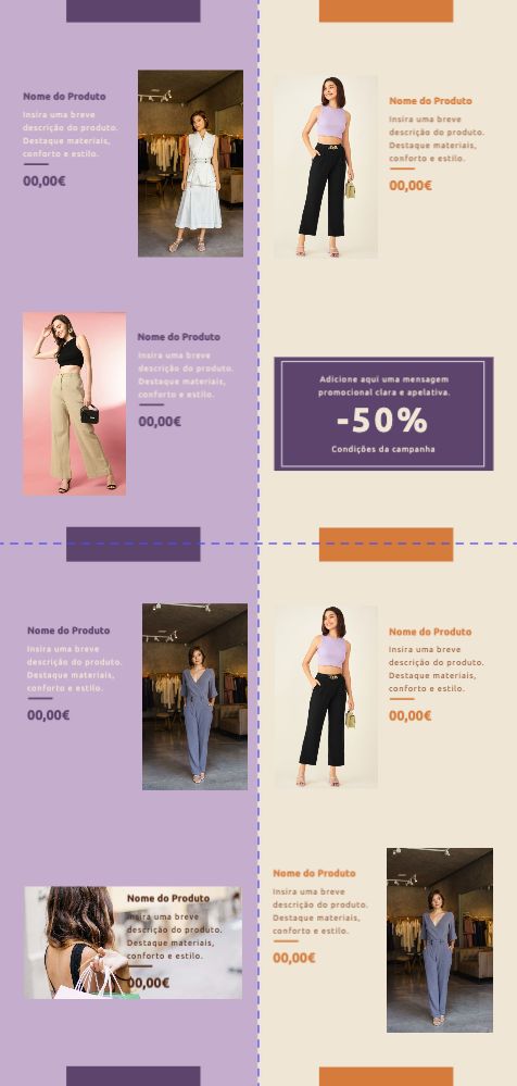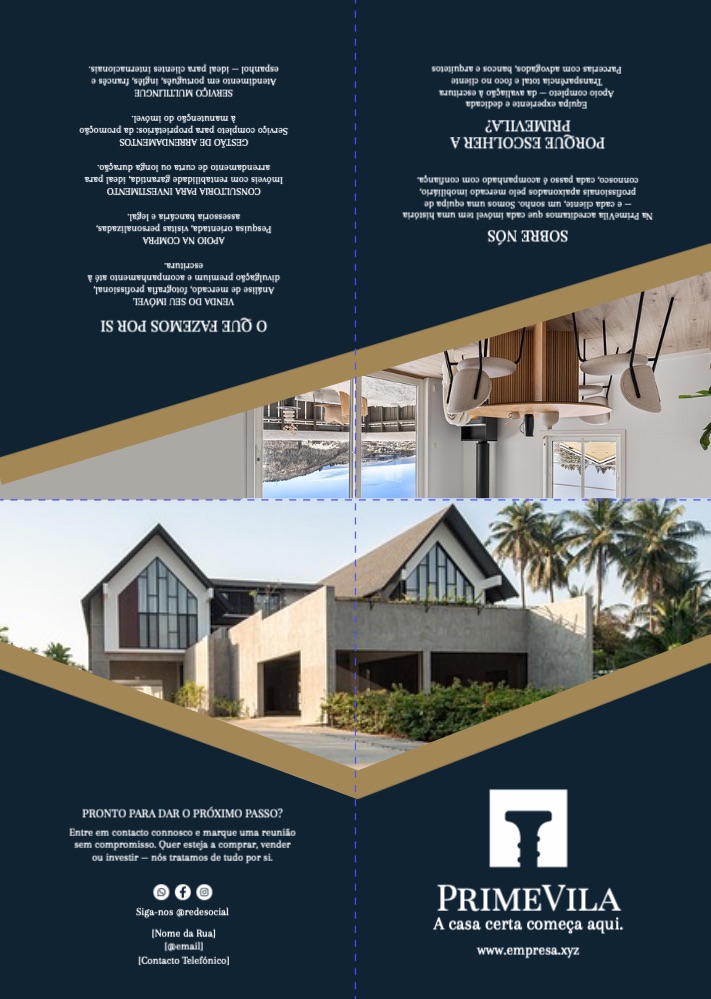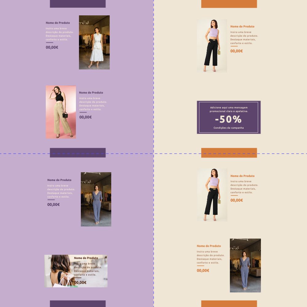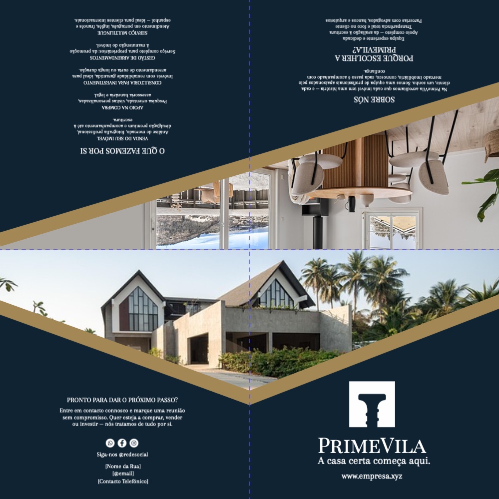 Explore diferentes estilos e modelos de folhetos com 2 dobras cruzadas. Escolha o design que melhor representa o seu negócio e personalize-o facilmente no nosso editor de design online.