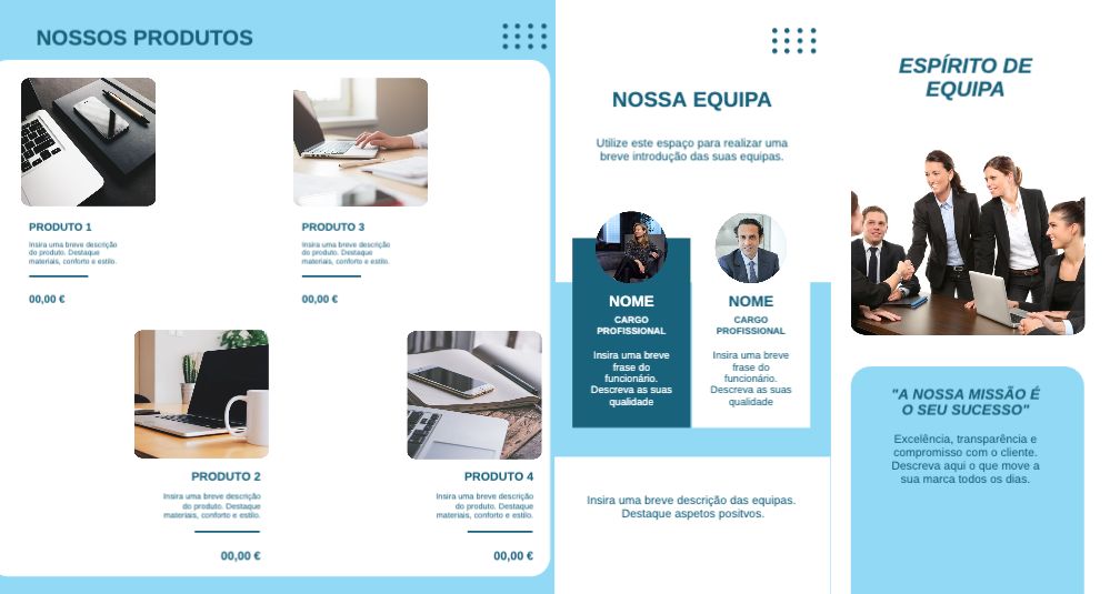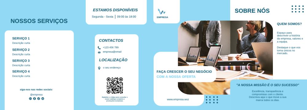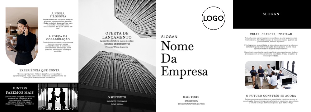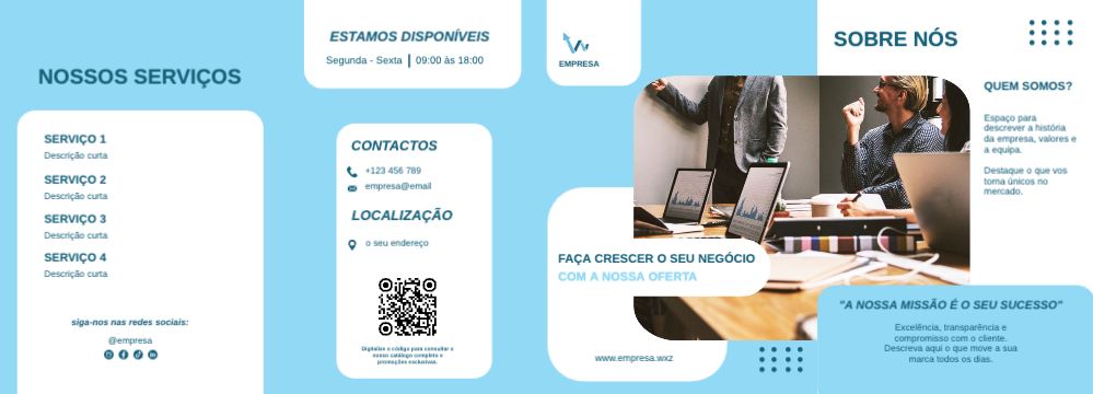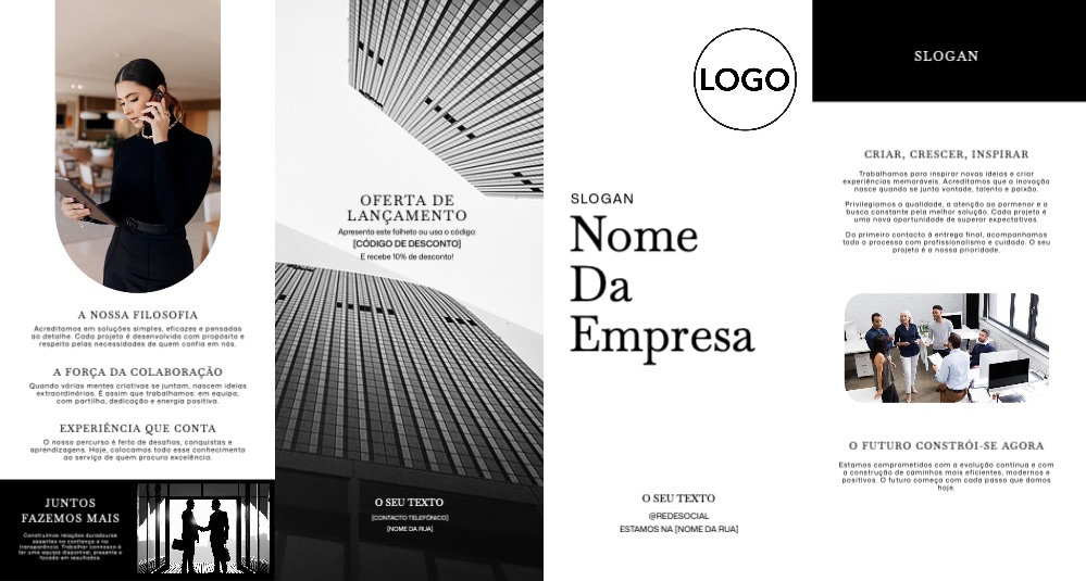 Explore different styles and templates of double gate fold leaflets. Choose the design that best represents your business and easily customise it in our online design editor.