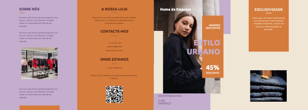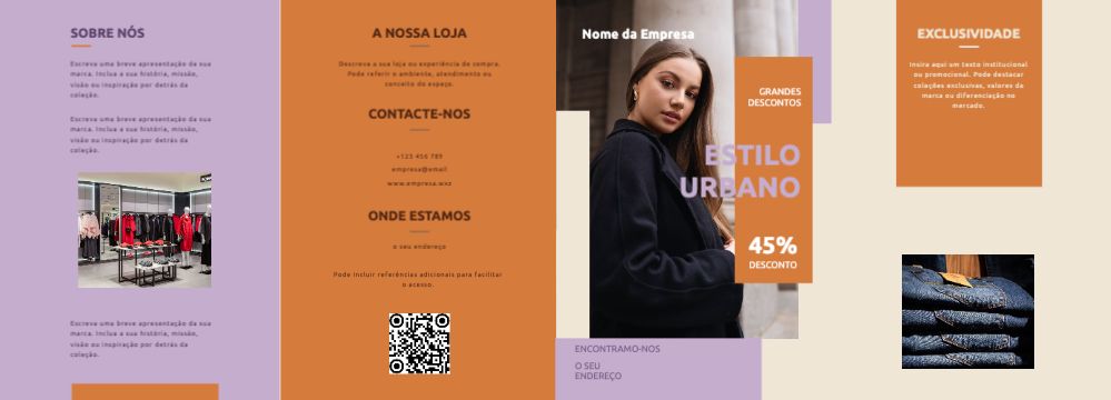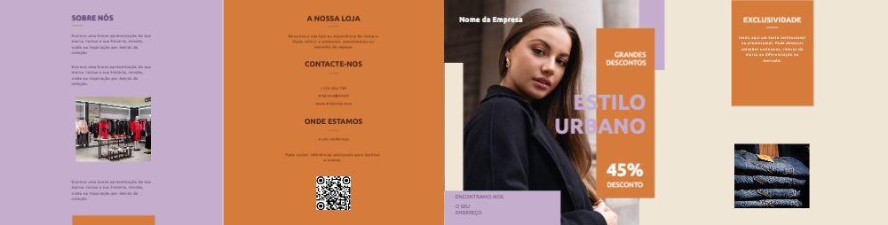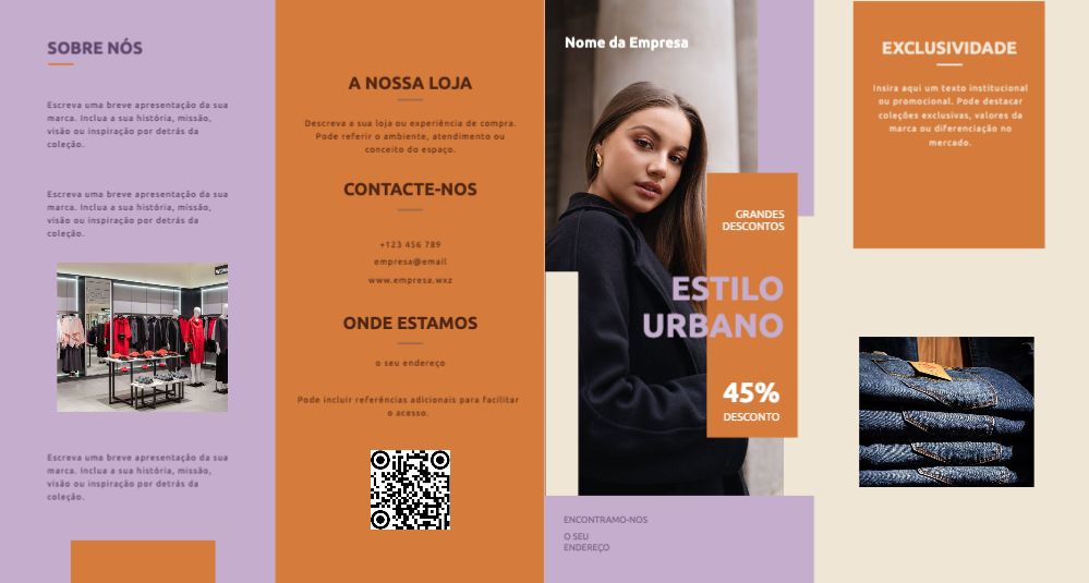 Explore diferentes estilos e modelos de folhetos com 3 dobras em janela. Escolha o design que melhor representa o seu negócio e personalize-o facilmente no nosso editor de design online.