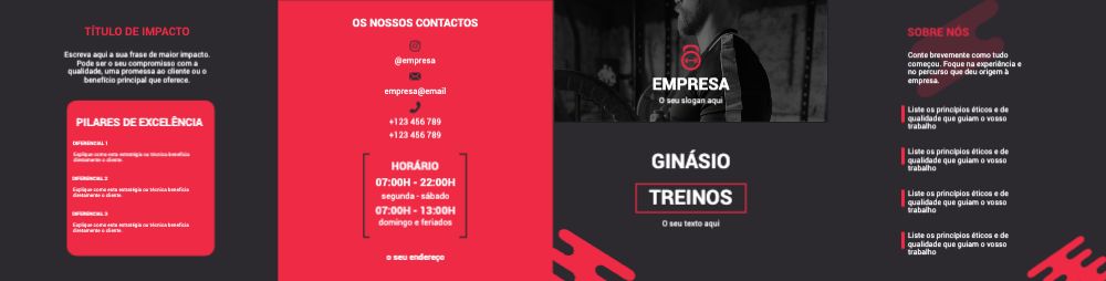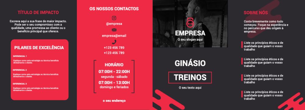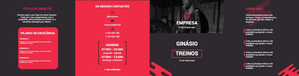 Explore diferentes estilos e modelos de folhetos com 3 dobras em janela. Escolha o design que melhor representa o seu negócio e personalize-o facilmente no nosso editor de design online.