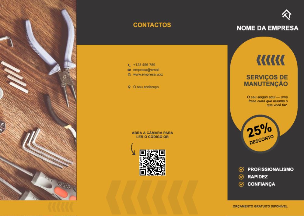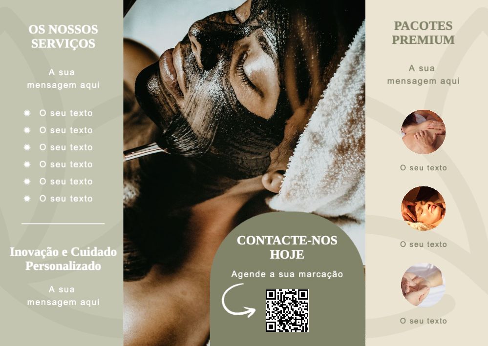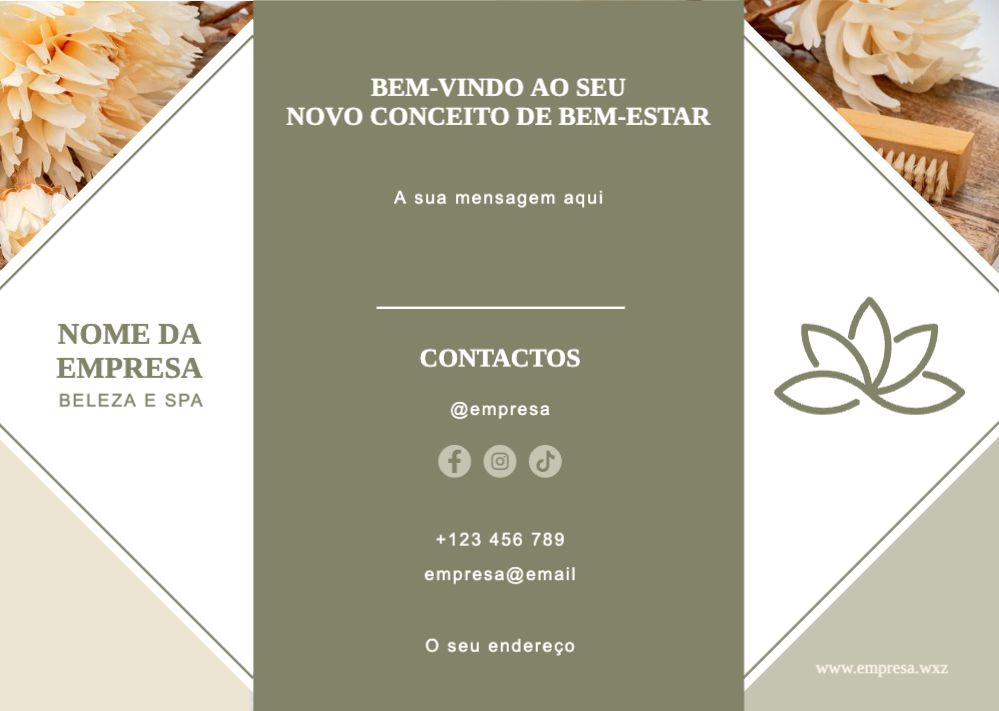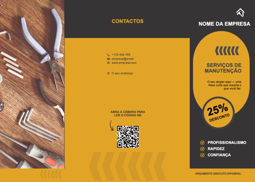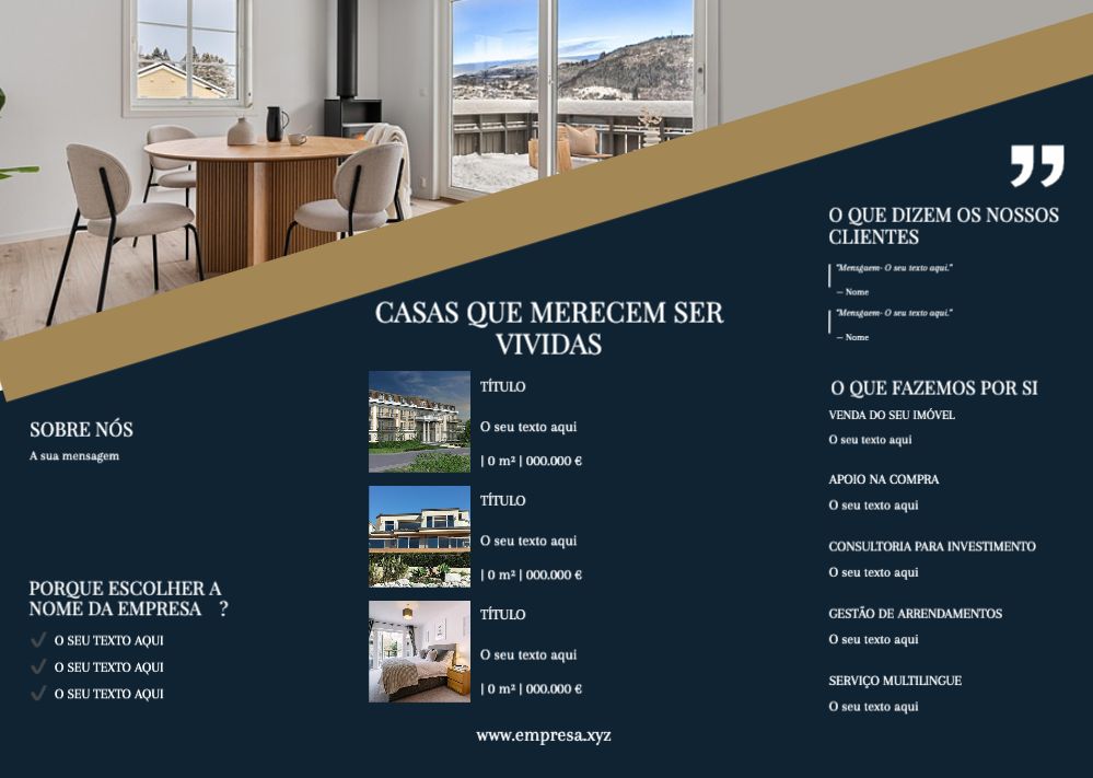 Explore diferentes estilos e modelos de folhetos trípticos em janela. Escolha o design que melhor representa o seu negócio e personalize-o facilmente no nosso editor de design online.