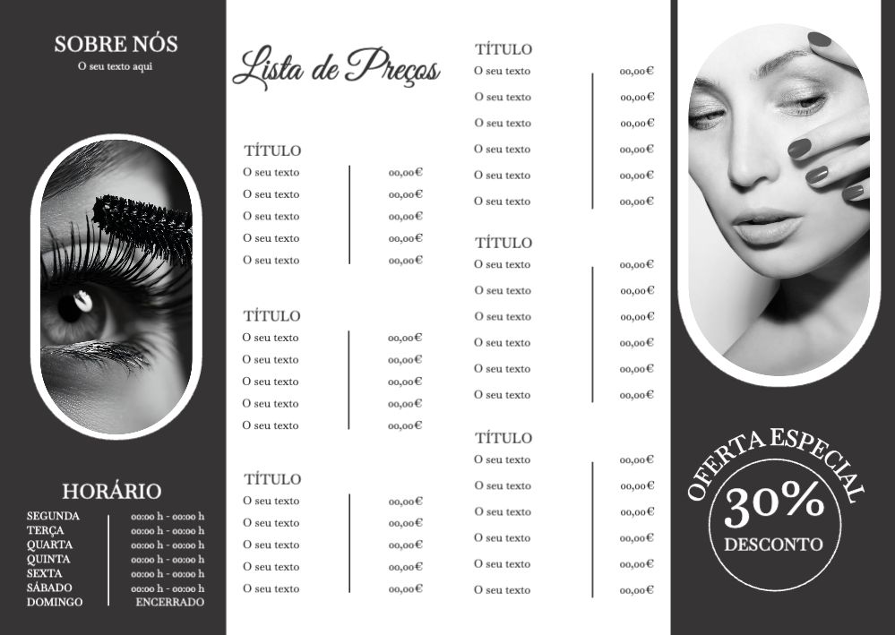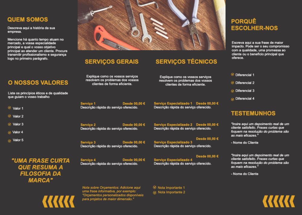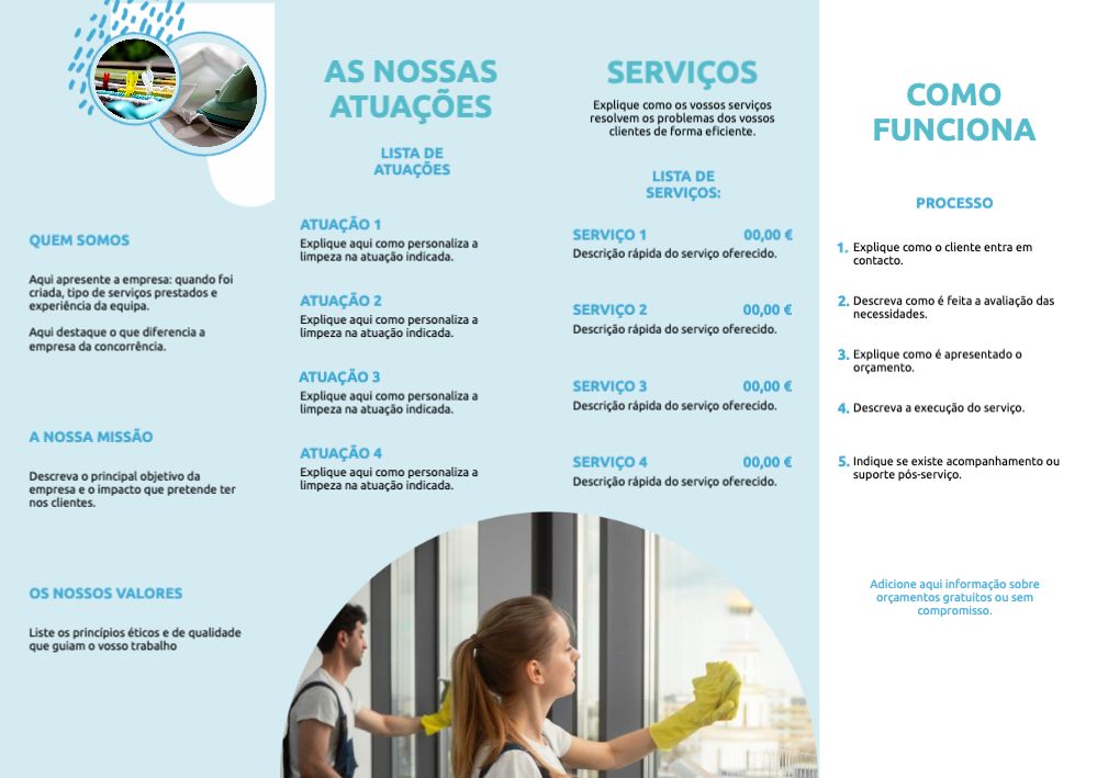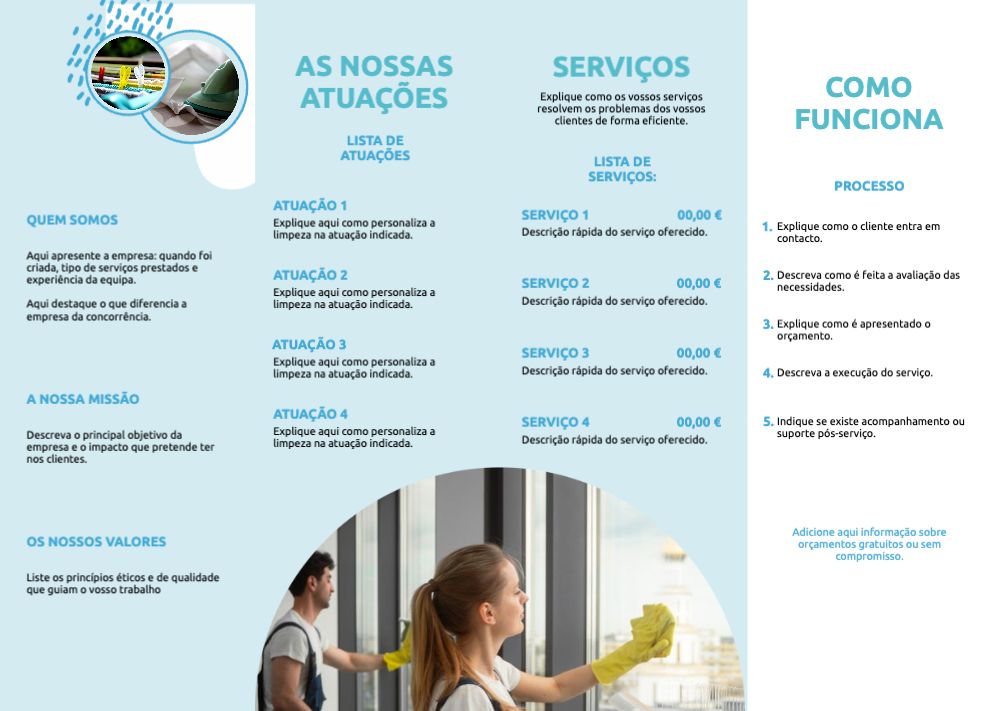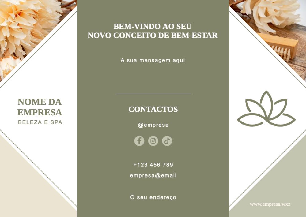 Explore diferentes estilos e modelos de folhetos trípticos em janela. Escolha o design que melhor representa o seu negócio e personalize-o facilmente no nosso editor de design online.