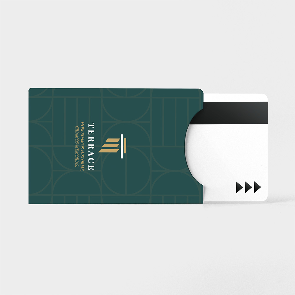 Explore diferentes estilos e modelos de porta-cartão chave de hotel. Escolha o design que melhor representa o seu negócio e personalize-o facilmente no nosso editor de design online.
