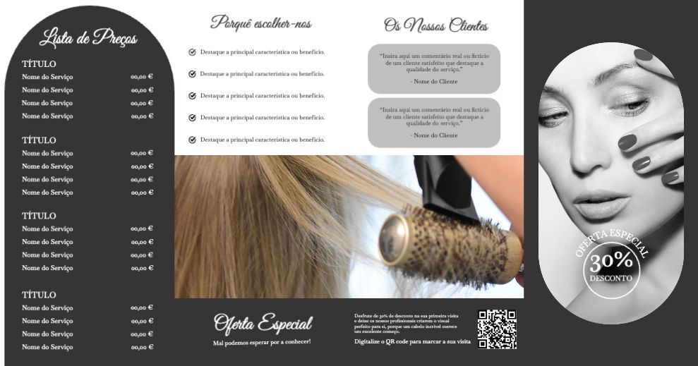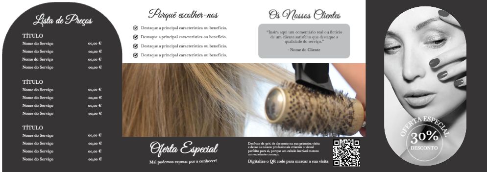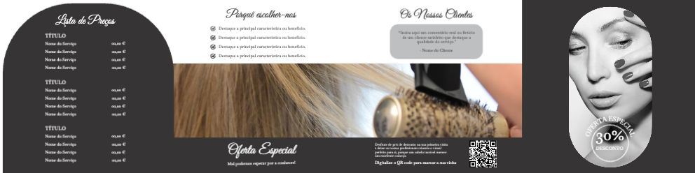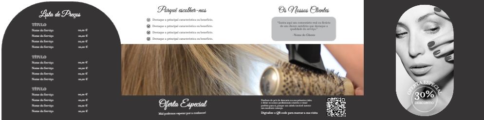 Explore diferentes estilos e modelos de folheto com 3 dobras em z. Escolha o design que melhor representa o seu negócio e personalize-o facilmente no nosso editor de design online.