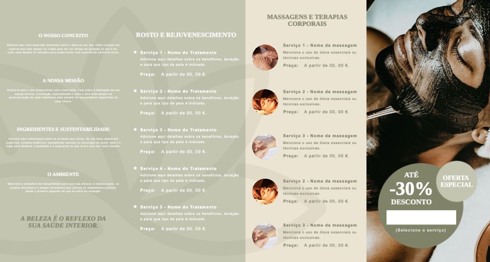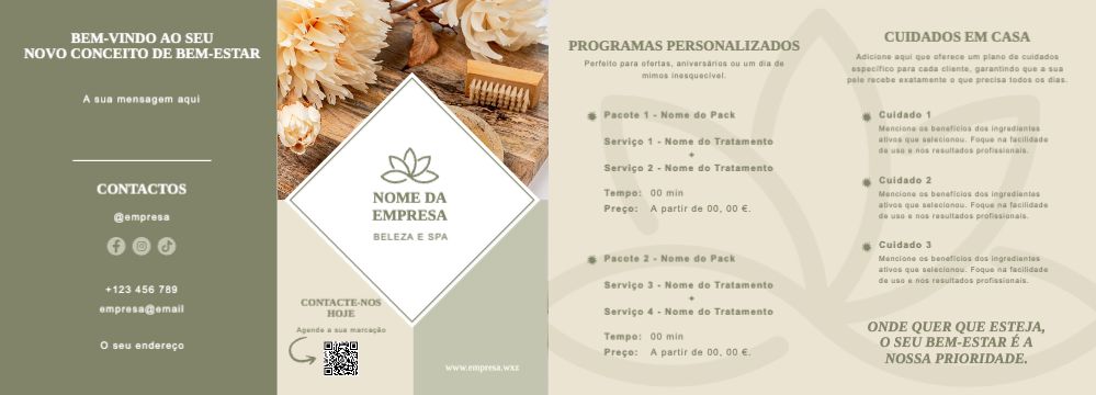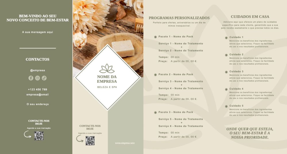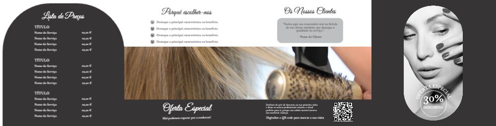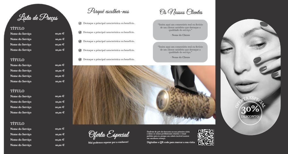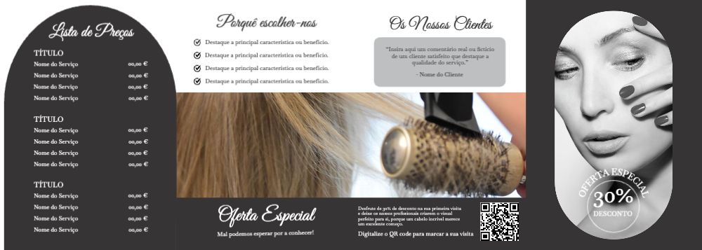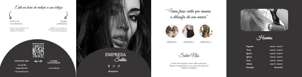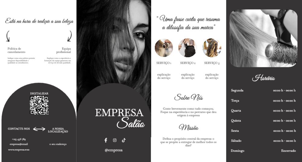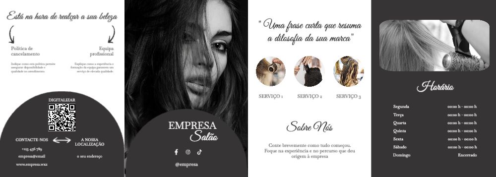 Explore diferentes estilos e modelos de folheto com dobra dupla paralela. Escolha o design que melhor representa o seu negócio e personalize-o facilmente no nosso editor de design online.