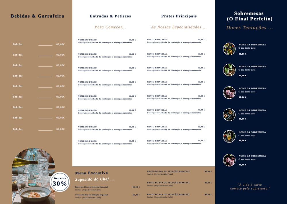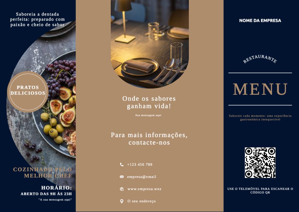 Explore diferentes estilos e modelos de folhetos trípticos em janela. Escolha o design que melhor representa o seu negócio e personalize-o facilmente no nosso editor de design online.