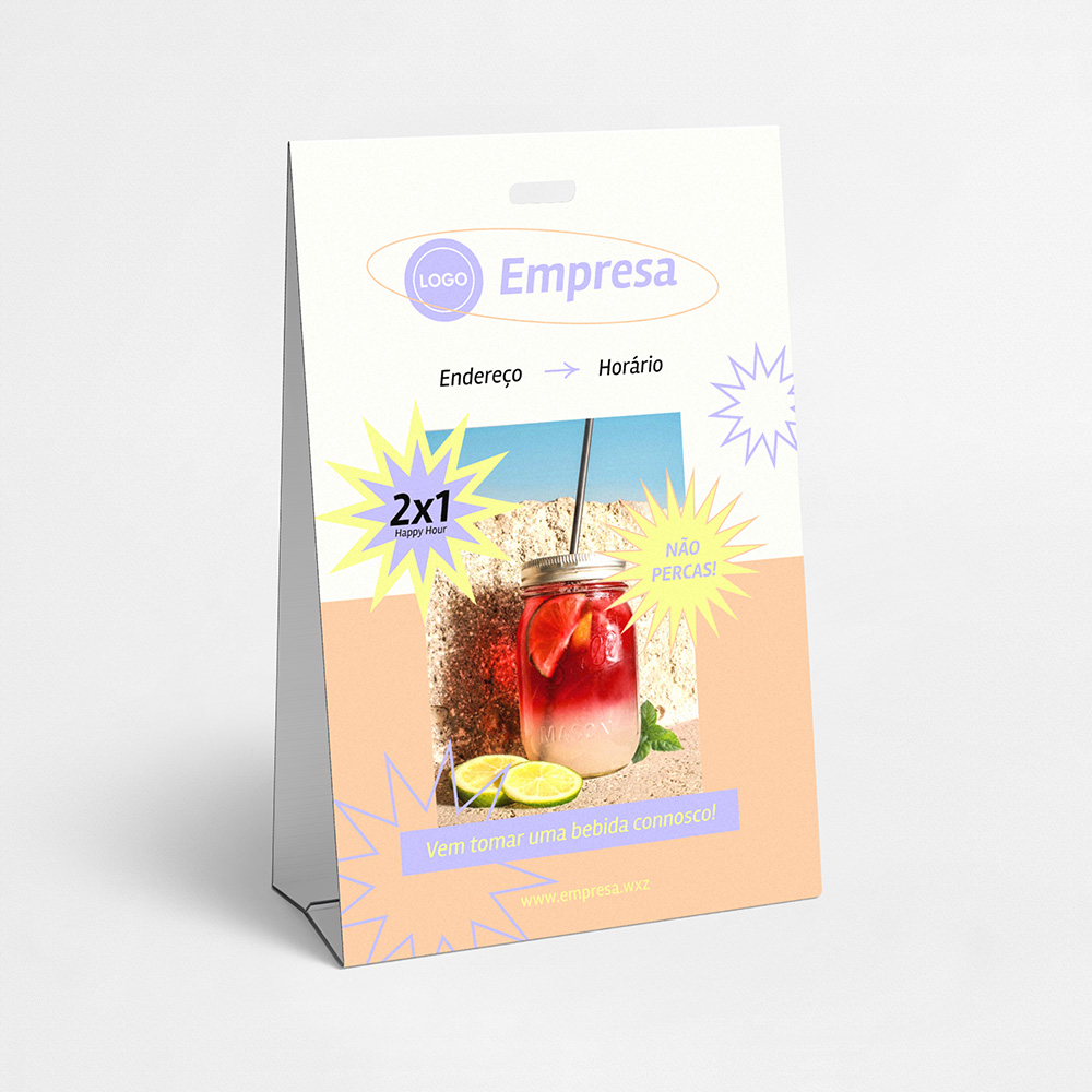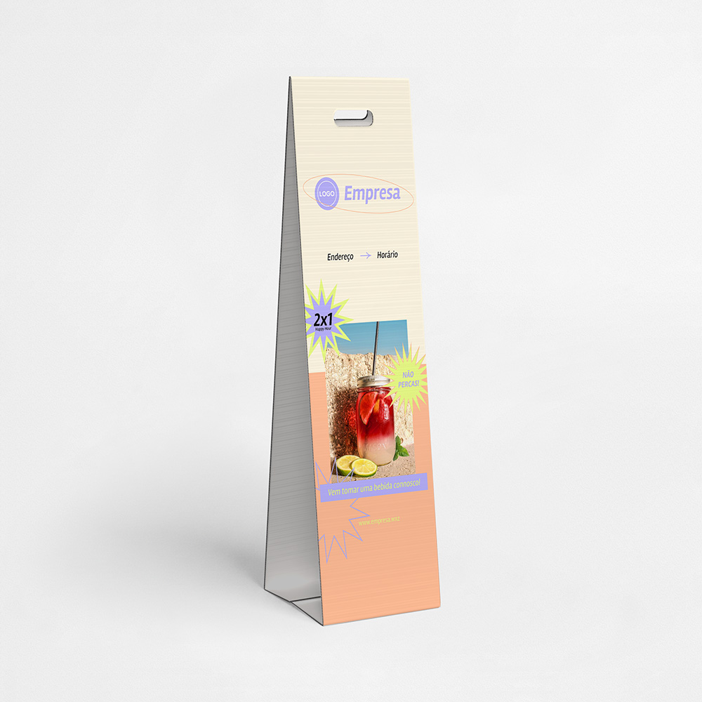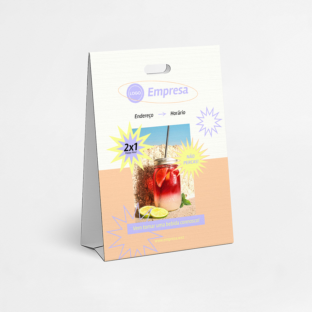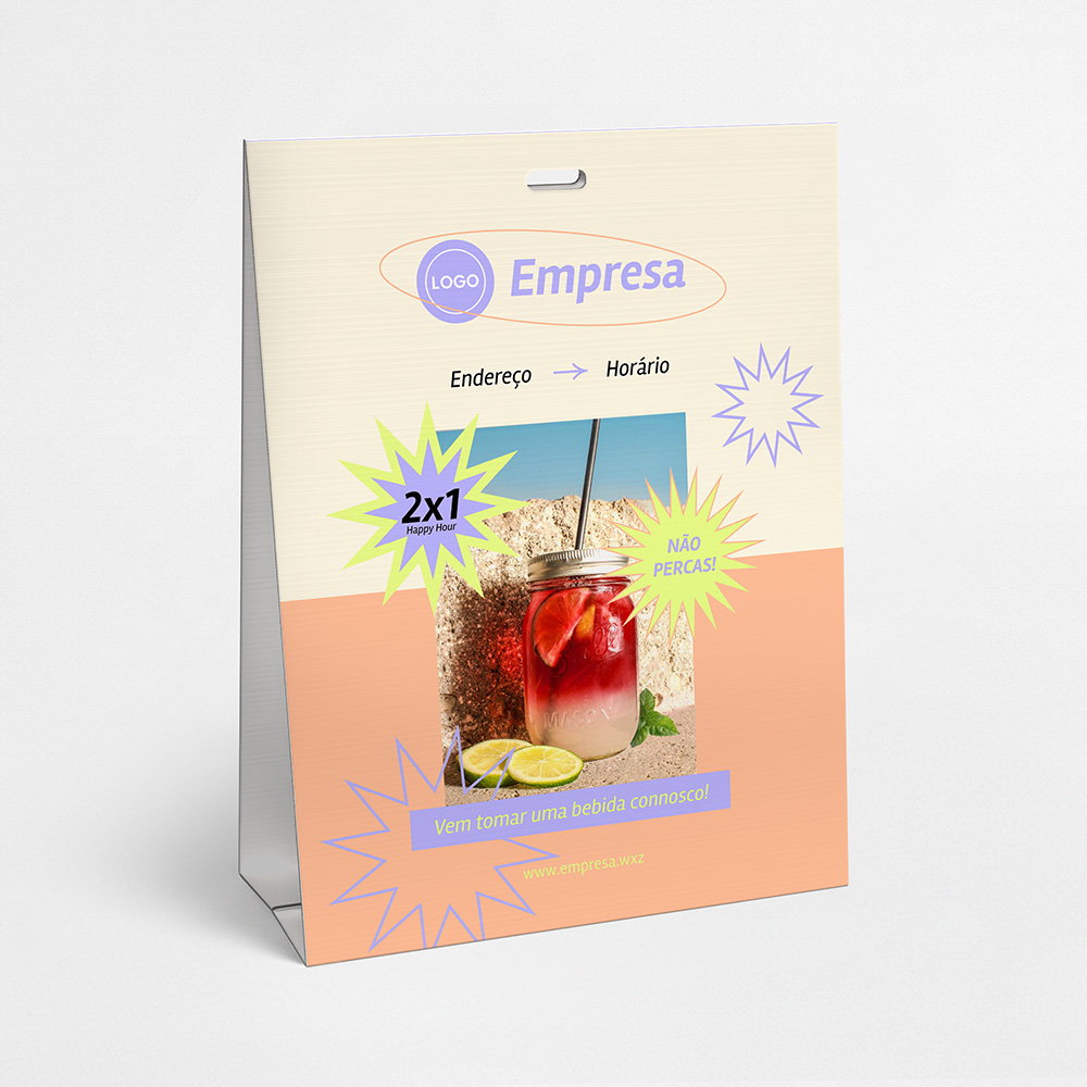 Explore diferentes estilos e modelos de cavaletes em pvc alveolar. Escolha o design que melhor representa o seu negócio e personalize-o facilmente no nosso editor de design online.