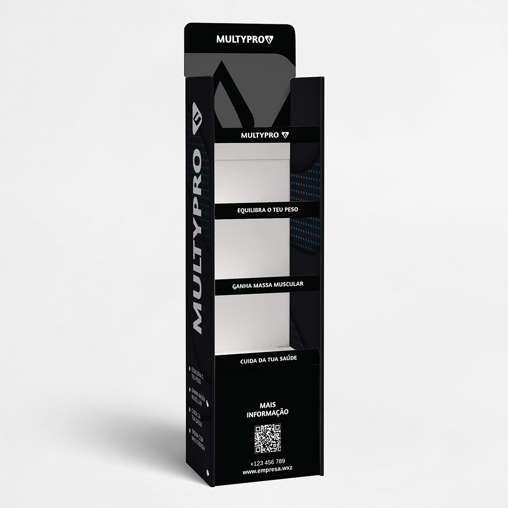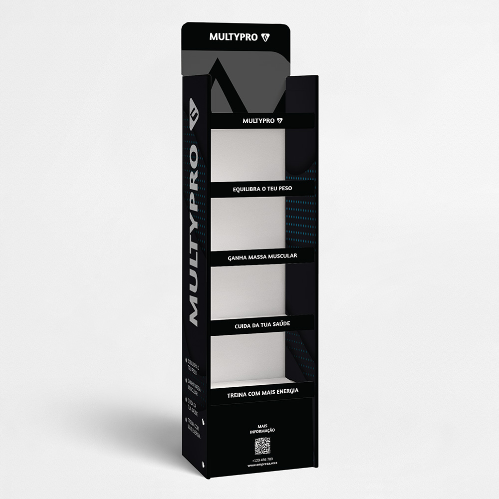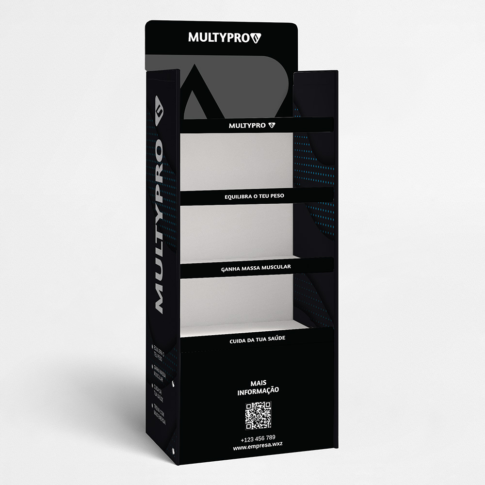 Explore diferentes estilos e modelos de expositores para produtos. Escolha o design que melhor representa o seu negócio e personalize-o facilmente no nosso editor de design online.