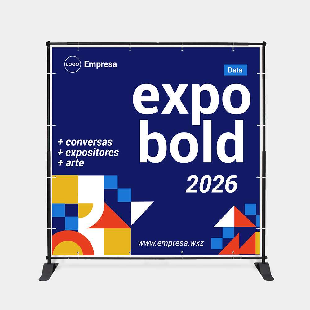 Explore diferentes estilos e modelos de expositor extensível. Escolha o design que melhor representa o seu negócio e personalize-o facilmente no nosso editor de design online.