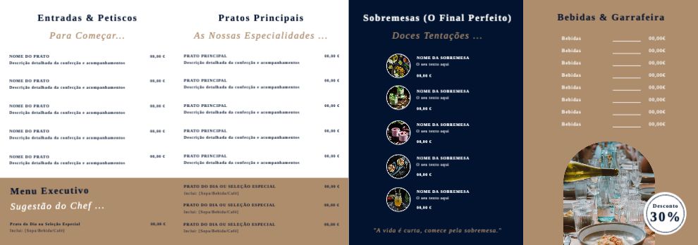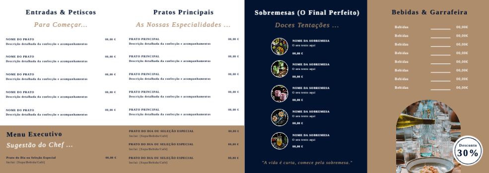Explore diferentes estilos e modelos de folheto com 3 dobras em z. Escolha o design que melhor representa o seu negócio e personalize-o facilmente no nosso editor de design online.