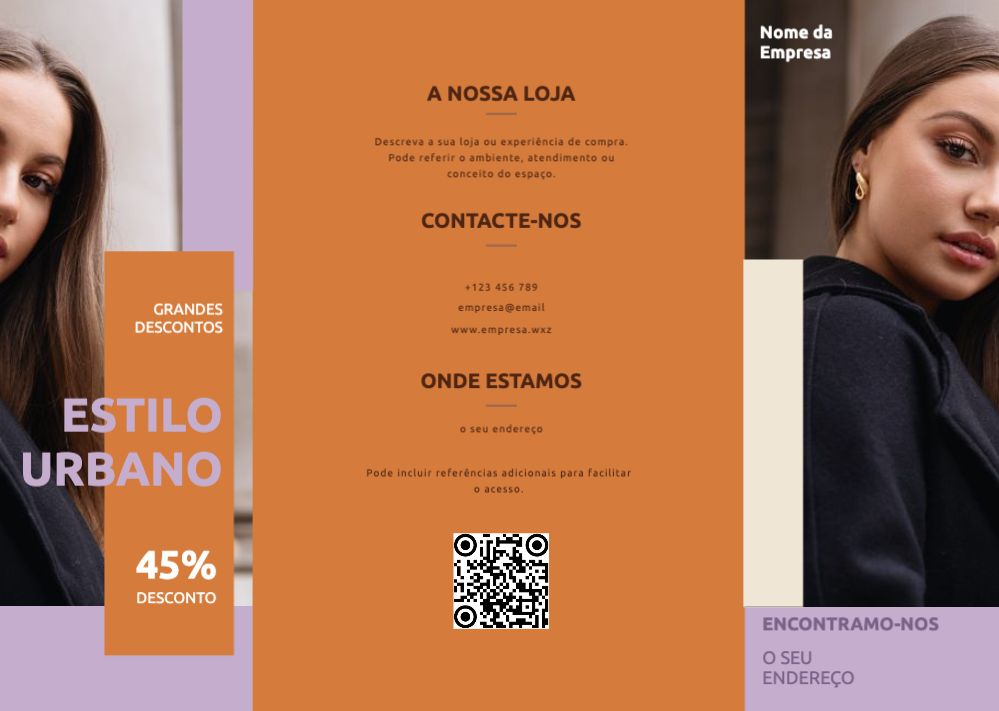 Explore diferentes estilos e modelos de folhetos trípticos em janela. Escolha o design que melhor representa o seu negócio e personalize-o facilmente no nosso editor de design online.