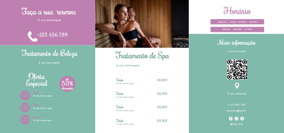 Explore diferentes estilos e modelos de folhetos trípticos. Escolha o design que melhor representa o seu negócio e personalize-o facilmente no nosso editor de design online.